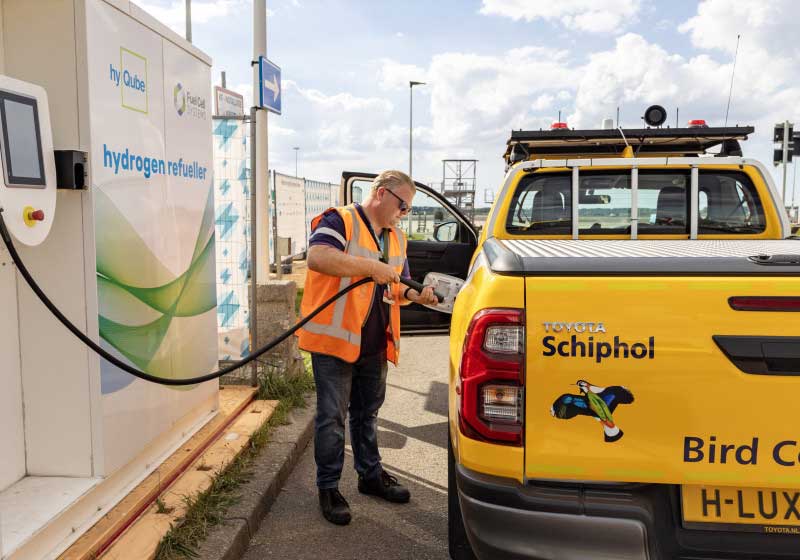 L’aéroport d’Amsterdam-Schiphol a lancé un pilote mondial inédit en testant des véhicules à hydrogène pour ses opérations au sol.