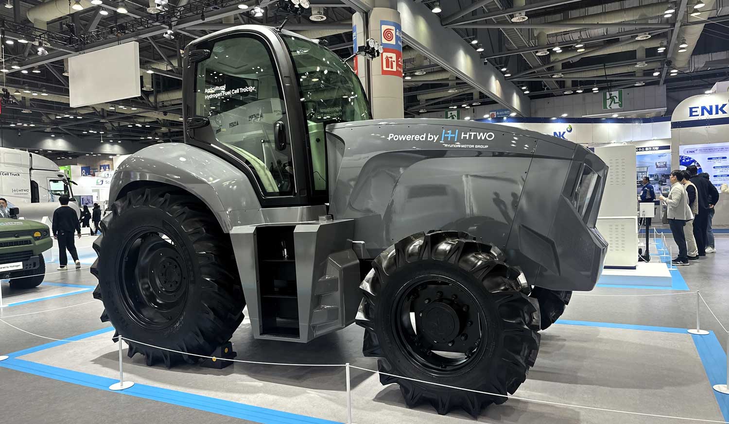 Ce bateau à hydrogène n'était d'ailleurs pas le seul démonstrateur des applications envisagées par le constructeur. Dans le domaine agricole, Hyundai présentait également un concept de tracteur à pile hydrogène offrant jusqu'à 4 heures d'autonomie.