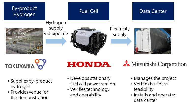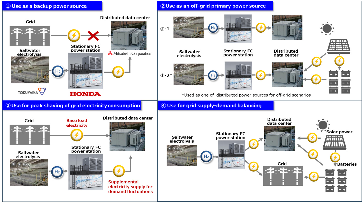 Honda expérimente en collaboration avec Tokuyama et Mitsubishi l’alimentation d’un data center à partir de piles à combustible issues de véhicules à hydrogène arrivés en fin de vie.
