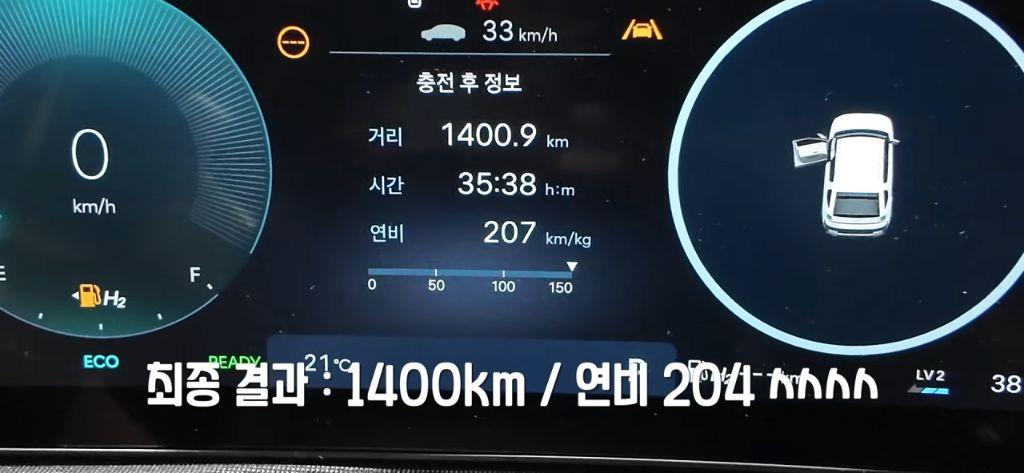 C’est autour de Saemangeum, sur la côte ouest coréenne, que deux exemplaires du nouveau Hyundai Nexo ont été lancés dans ce marathon hydrogène. Le test a été mené par quatre YouTubeurs auto locaux - Itseop, Ahn Oh-jun, Kang Byeong-hui et Motrain - qui se sont répartis le volant tout au long du challenge. Objectif : rouler le plus longtemps possible sans recharger en adoptant la conduite la plus économique possible. Résultat ? 1 400,9 km pour le premier véhicule, détenteur du record, et 1 360,7 km pour le second.