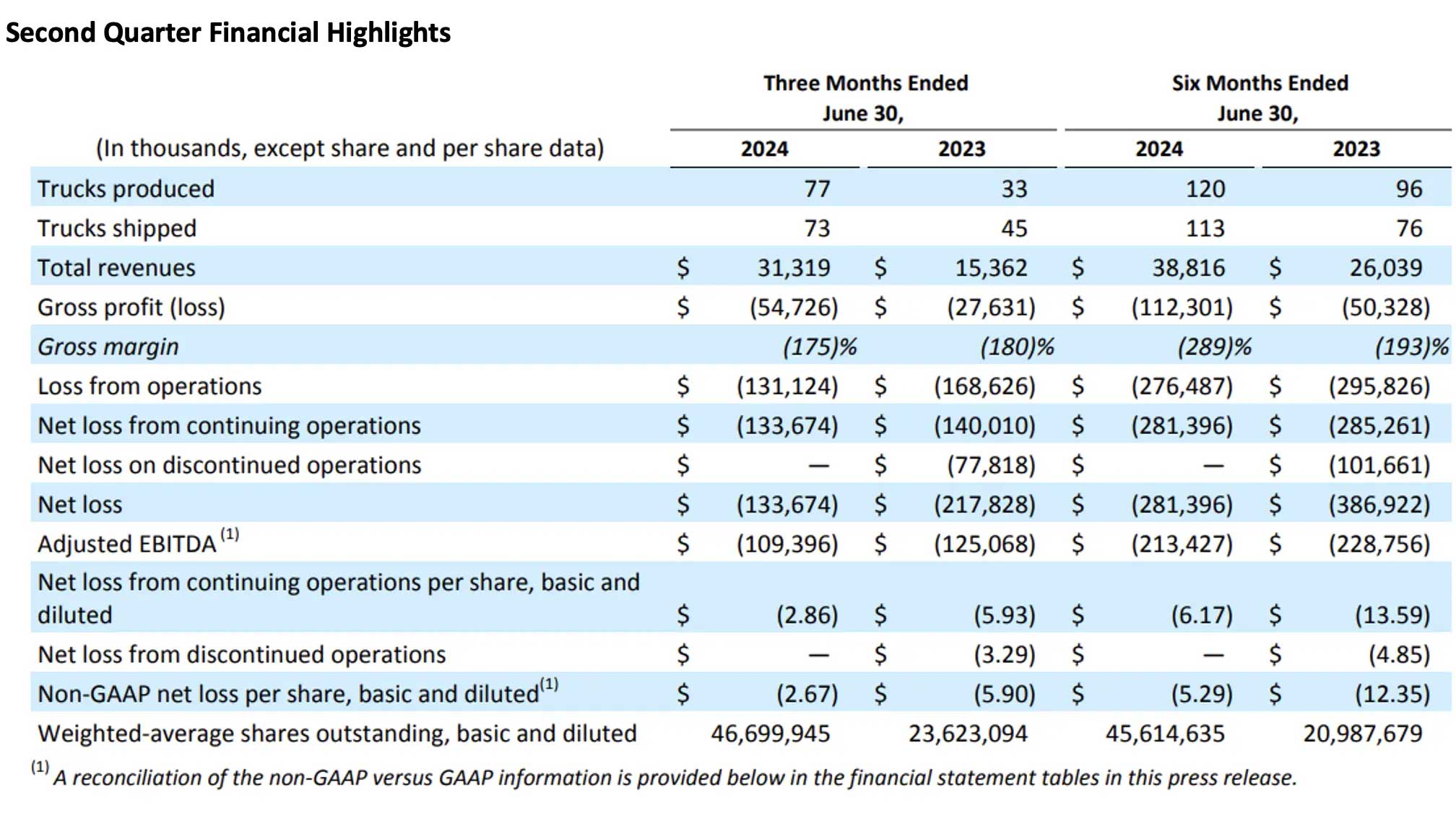 Pour rappel, Nikola a enregistré des pertes nettes de 147,2 millions de dollars au premier trimestre 2024, 153,6 millions de dollars au quatrième trimestre 2023 et 425,8 millions de dollars au troisième trimestre 2023. En y ajoutant la perte constatée au second trimestre 2024, le constructeur américain cumule 860 millions de dollars de pertes sur un an, dont 281.4 millions de dollars sur le premier semestre 2024.